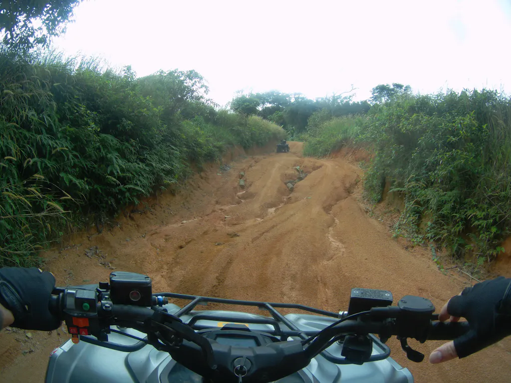 Wir fahren in einer kleinen Gruppe, vorbei an Felsformationen, auf abgelegenen Bergpfaden, zu atemberaubenden Aussichtspunkten, sandigen und schlammigen Mulden und genießen den Schatten der Kokospalmen. Das leistungsstarke ATV bringt Sie mühelos durch den gesamten Tag. Selbst mit einem Beifahrer, gibt es keine Bedenken während der Fahrt an einem der steilen Abschnitte zu scheitern.