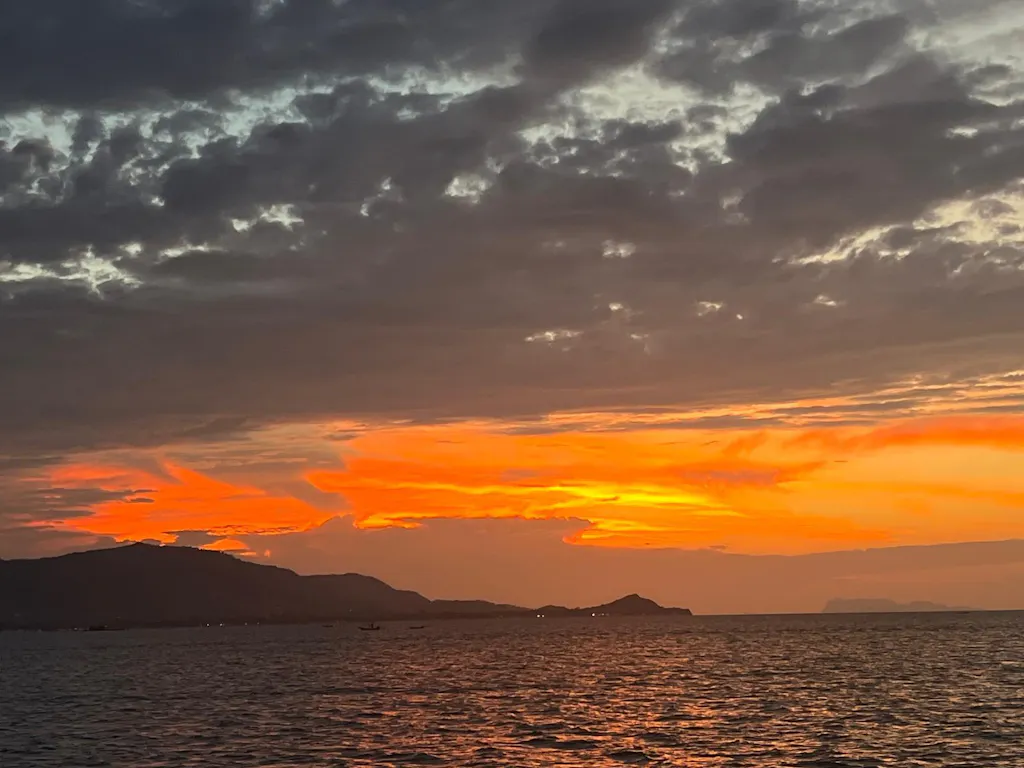 Unser heutiger Tagesausflug endet auf der idyllischen Rückfahrt nach Koh Samui bei einem traumhaften Sonnenuntergang. Die Stille, sowie aber auch die Lichtspiele am Horizont und die kräftigen Rottöne der Sonne sind malerisch schön und bieten ein romantisches Ambiente an Bord des geräumigen Segelschiffes. Die Atmosphäre ist unvergesslich und einzigartig schön.
